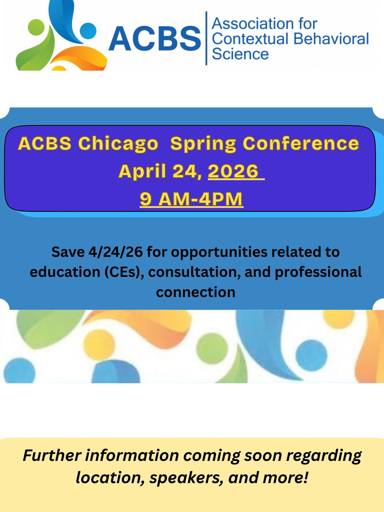 Approximately twice per year, we host a meetup for anyone interested in learning more about ACBS, ACT, RFT, or the community. Let us know if you’re interested or if you have any ideas for an ACBS Chicago social event!